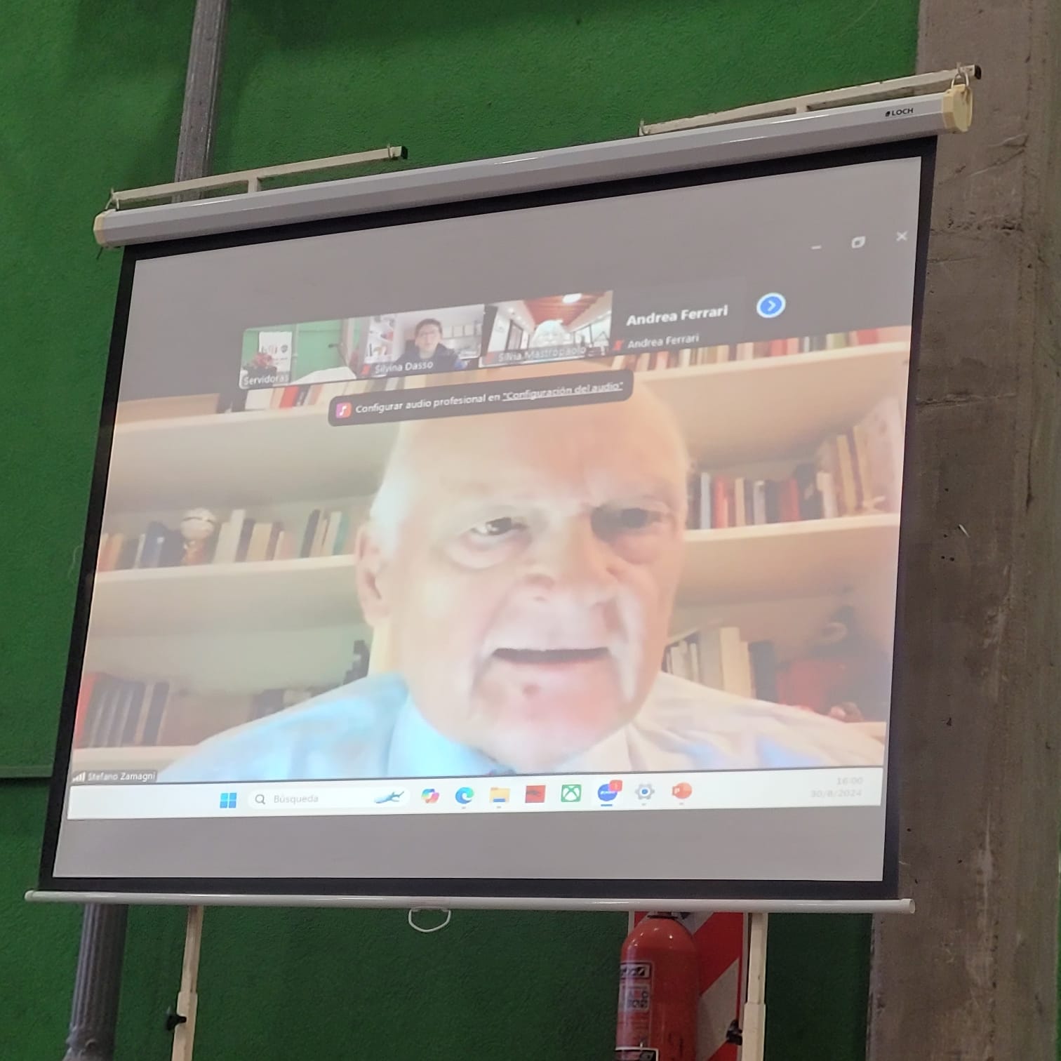 Stefano Zamagni, se refirió a la IA y su impacto: cómo está transformando la sociedad actual. Durante su exposición buscó promover una mirada neohumanista, enfocada en los valores fundamentales del ser humano, y enfatizó en la necesidad de capacitar a los docentes para integrar la IA de manera responsable en el aula.